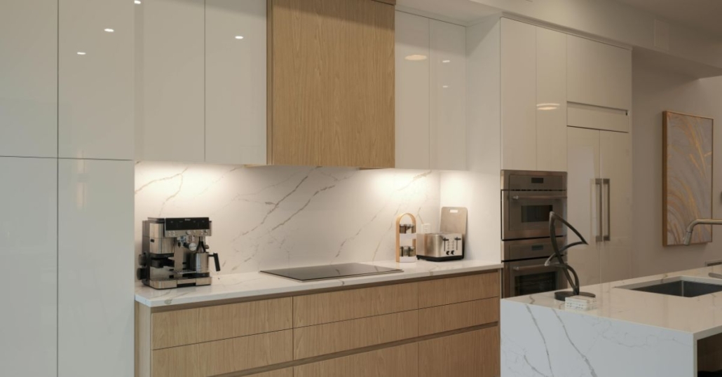 Para evitarlo, debes apostar por materiales resistentes como los porcelánicos, el cuarzo o los laminados de alta calidad, que soporten humedad, calor y uso continuo sin apenas sufrir alteraciones.